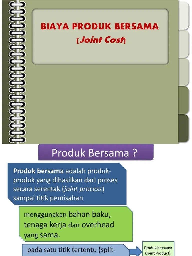 Manfaat menghitung alokasi biaya dalam produk bersama adalah: Jelaskan mengapa perlu atau mengapa tidak perlu. Buatlah alokasi biaya bersama terhadap produk tersebut. Metode penelitian yang digunakan adalah metode harga pokok produksi menggunakan metode joint cost dengan pendekatan metode full costing. Alokasi biaya pada metode ini didasarkan pada nilai pasar atau penjualan suatu produk pada titik pemisahan.