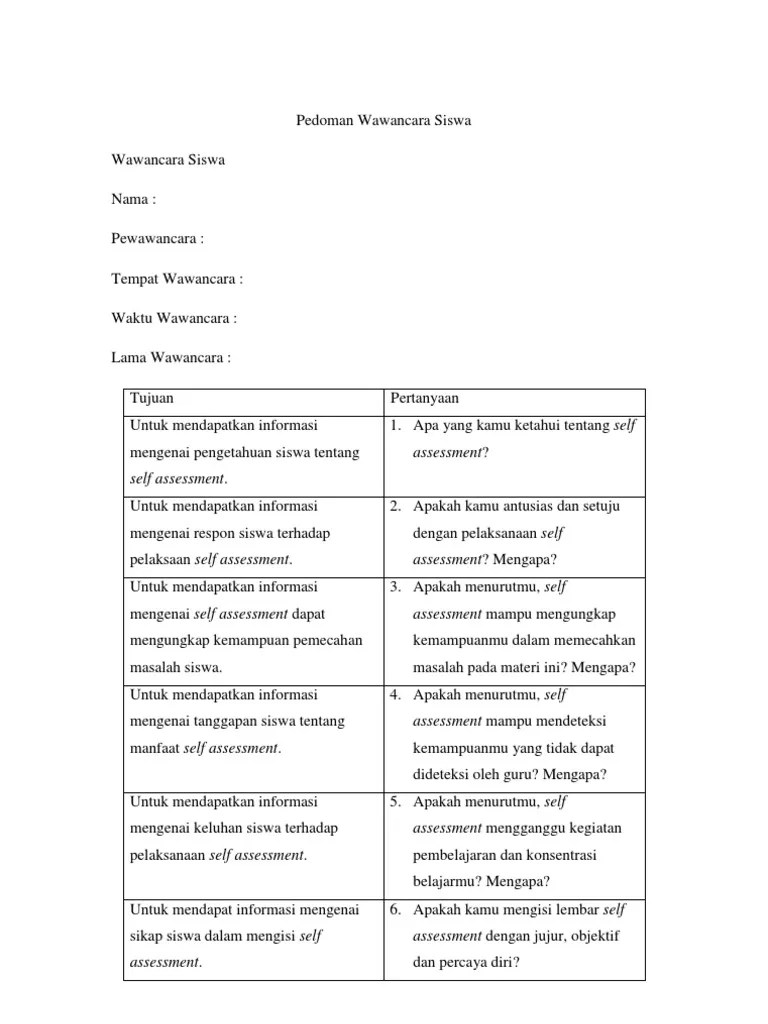 Anda memberikan contoh kepada siswa untuk selalu taat. Salah satu hal yang harus diperhatikan saat hendak melakukan wawancara adalah menyusun atau membuat pertanyaan wawancara. Sebelumnya perkenalkan nama saya raisa febrianti, siswa kelas 11 ips 2. Tes wawancara guru paud, contoh format wawancara paud, contoh wawancara anak tk, contoh format interview anak paud, pertanyaan wawancara . Apakah penting pendidikan karakter tersebut? Contoh daftar pertanyaan wawancara anak sd kelas v ke tukang sablon. Kendala apa yang ibu hadapi selama ini mengenai pengasuhan anak ibu? Karena di otak kita ini ada bagian yang dilatih untuk menciptakan dan berkarya. Di ruang guru sdn kembangan. Jadi cocok untuk anak muda yang pengen gaul dan fashionable.â€. Sejak dari sd, saya tergolong siswa yang sangat tertarik dengan ekstra. Wawancara bersama wali peserta didik dan peserta didik tunarungu. Bagaimana respon siswa saat proses .